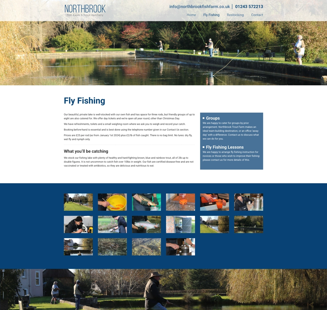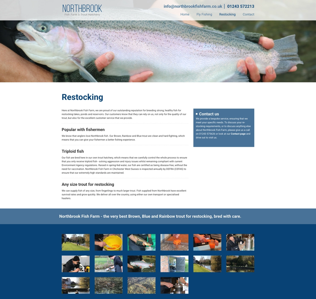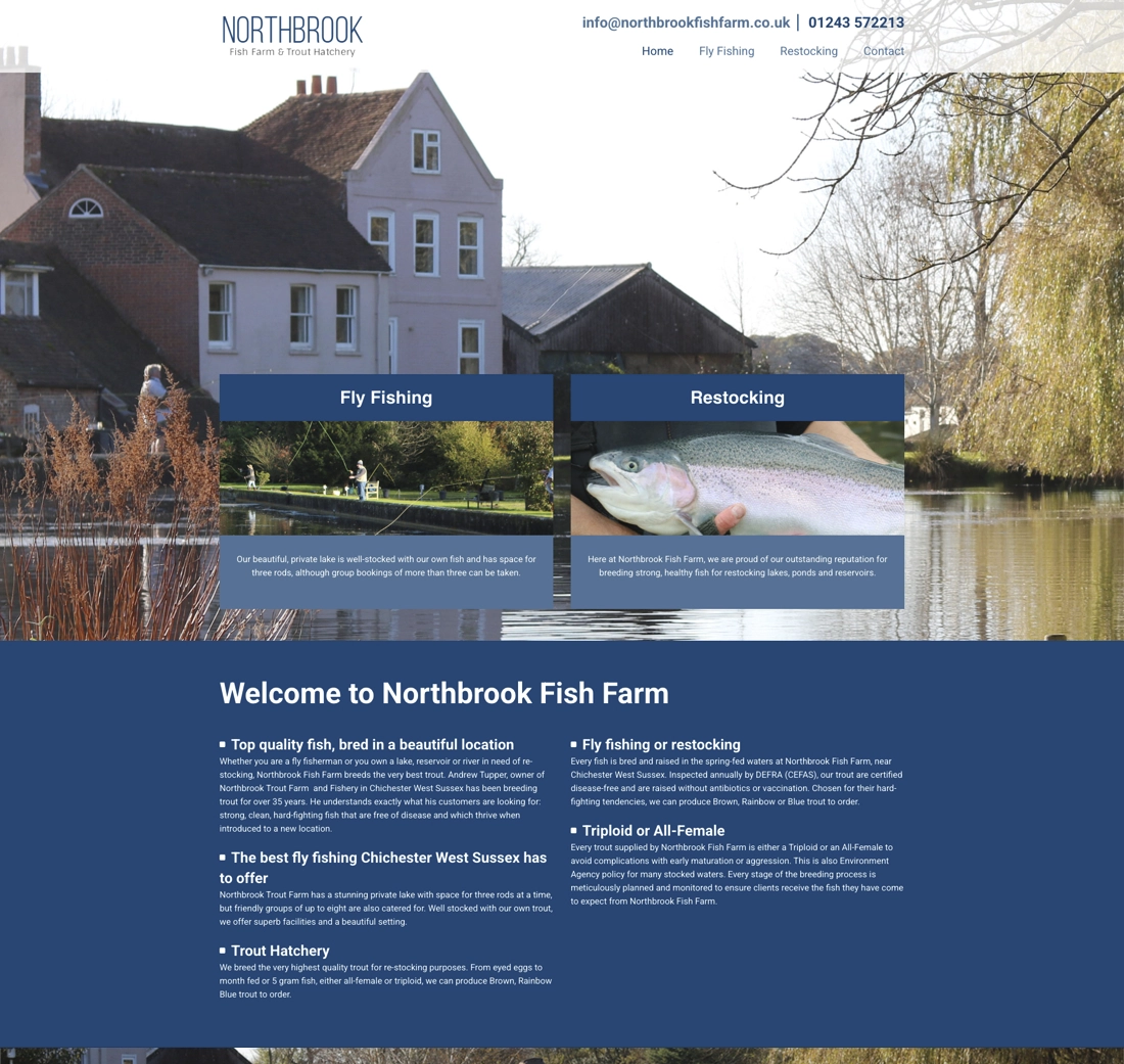 Located in the serene countryside of rural Sussex, Northbrook Fish Farm required a sophisticated online presence to showcase their premium-quality fish. The newly designed website features captivating visuals complemented by a parallax scrolling effect, creating an engaging sense of movement. This design not only highlights the picturesque environment of the farm but also appeals to fly fishermen and proprietors of lakes, reservoirs, or rivers seeking superior re-stocking solutions. Northbrook Fish Farm is dedicated to breeding the finest trout, ensuring excellence in every catch.